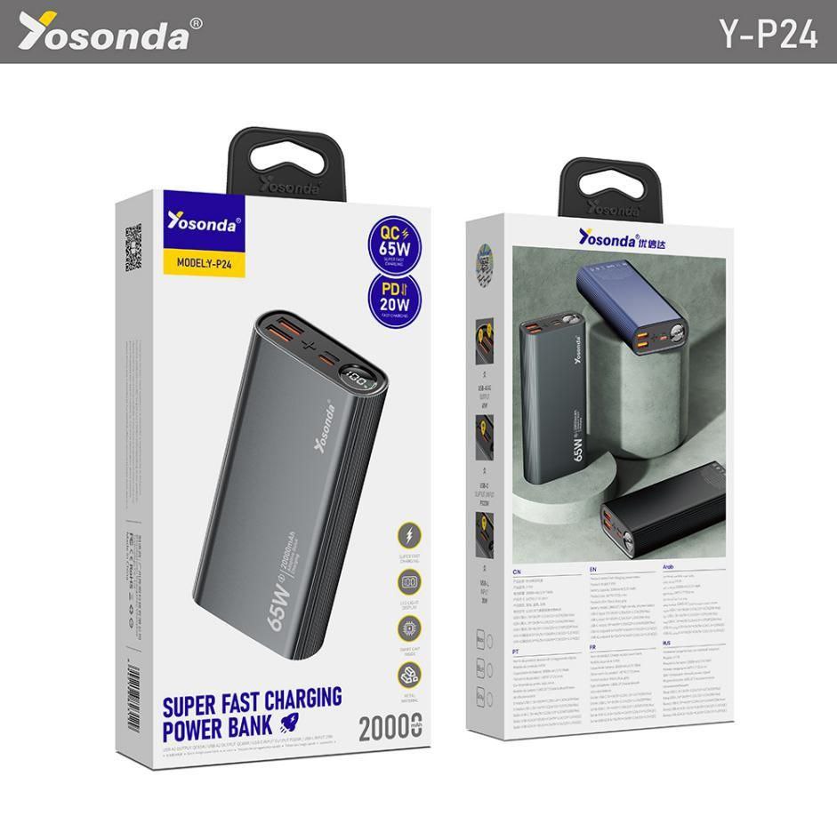 پاوربانک 20000مدلYosonda Y-P24با فناوری شارژ سریع65Wهمراه با هدیه ویژه