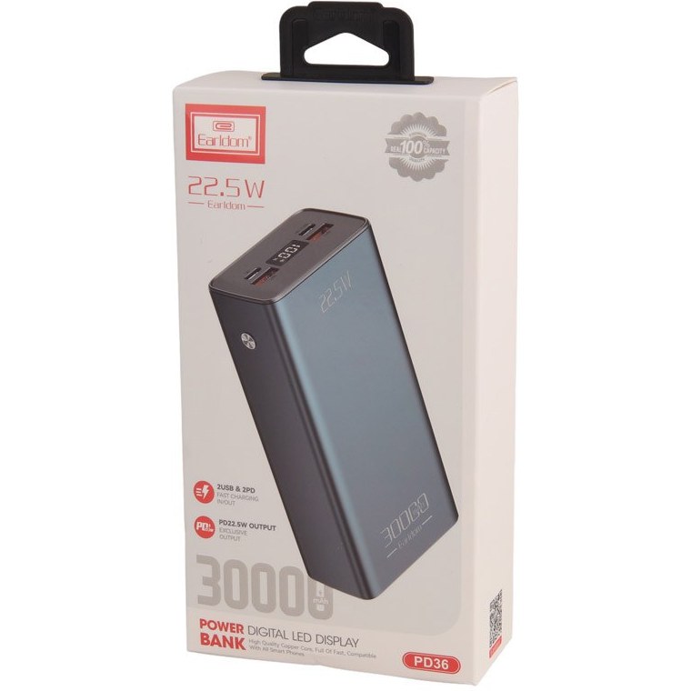 پاوربانک ارلدام مدل ET-PD36 ظرفیت ۳۰ هزار میلی آمپر ساعت