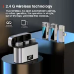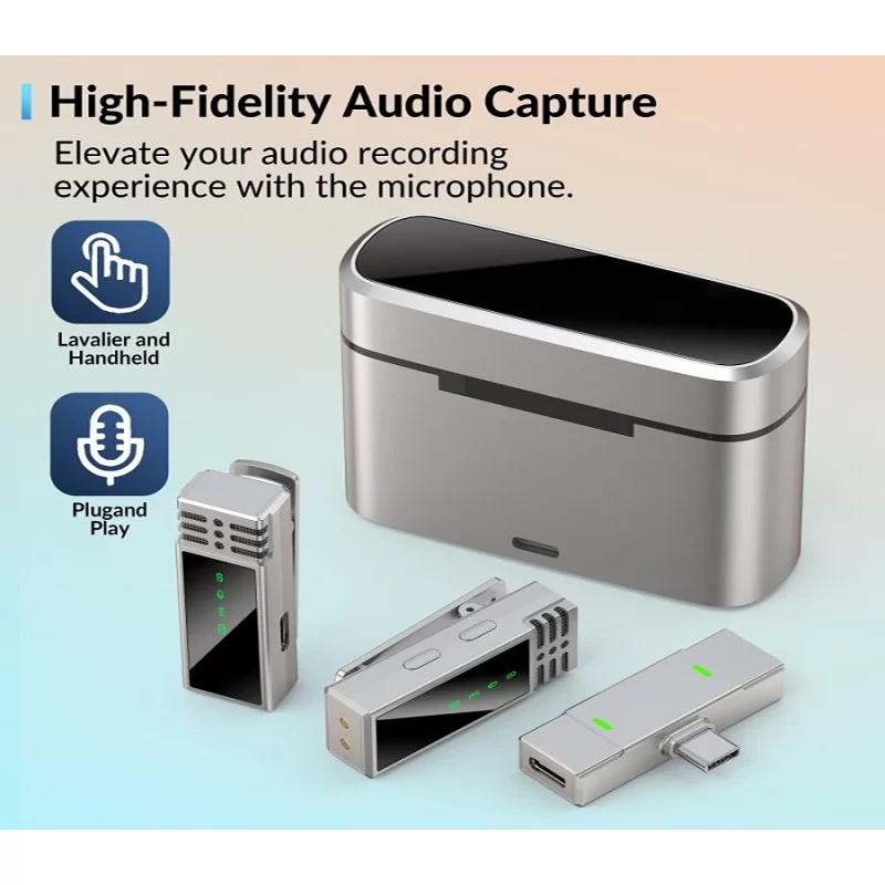 میکروفون دو کاربره مدل JMARY با فرکانس 2.4 گیگاهرتز، امکان ضبط صدایی شفاف و بدون نویز را فراهم میکند. این ویژگی موجب میشود صدای شما با کیفیت بالا و بدون تداخل به دستگاههای موبایل منتقل شود. این میکروفون ایدهآل برای استفاده در محیطهای شلوغ و پرسر و صدا است.