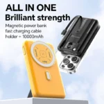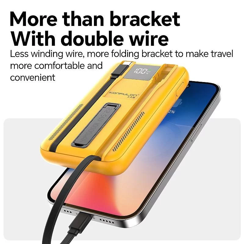 این پاوربانک علاوه بر شارژ کردن، به عنوان یک هولدر گوشی عمل میکند تا هنگام شارژ بتوانید راحت فیلم ببینید یا تماس تصویری برقرار کنید.