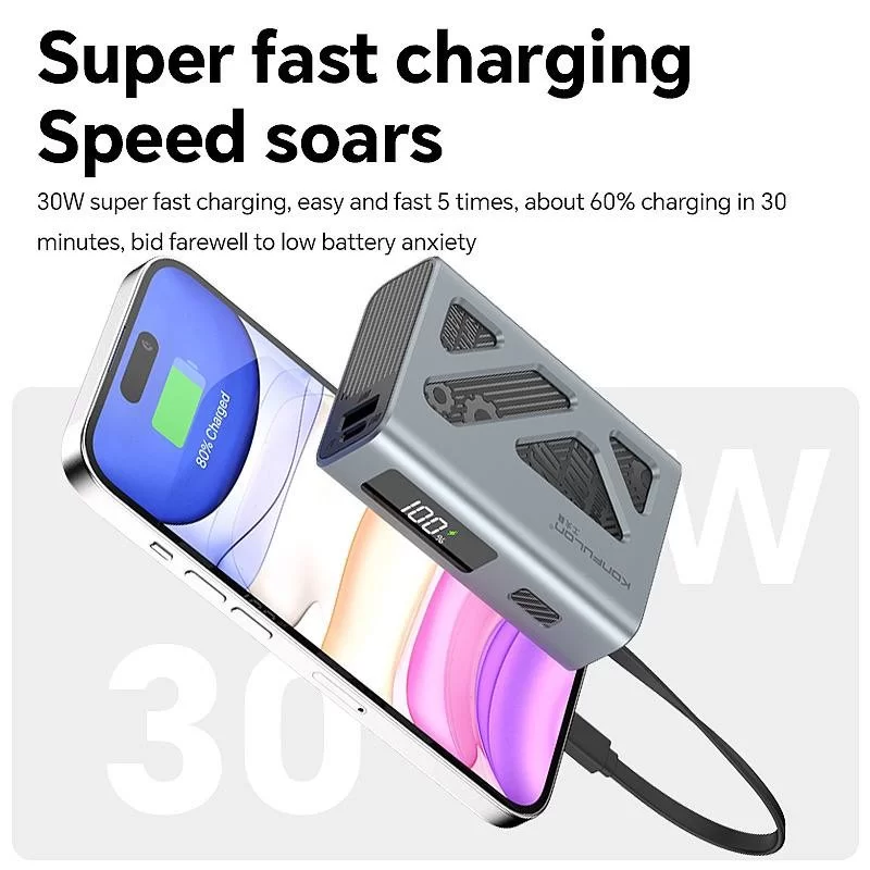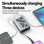 با وزن کم و طراحی فشرده، این پاوربانک به راحتی در جیب یا کیف شما جای میگیرد و با کابلهای داخلی کار حمل و نقل را برایتان سادهتر میکند.