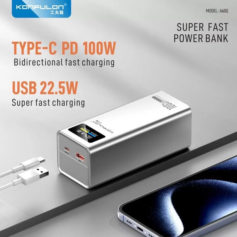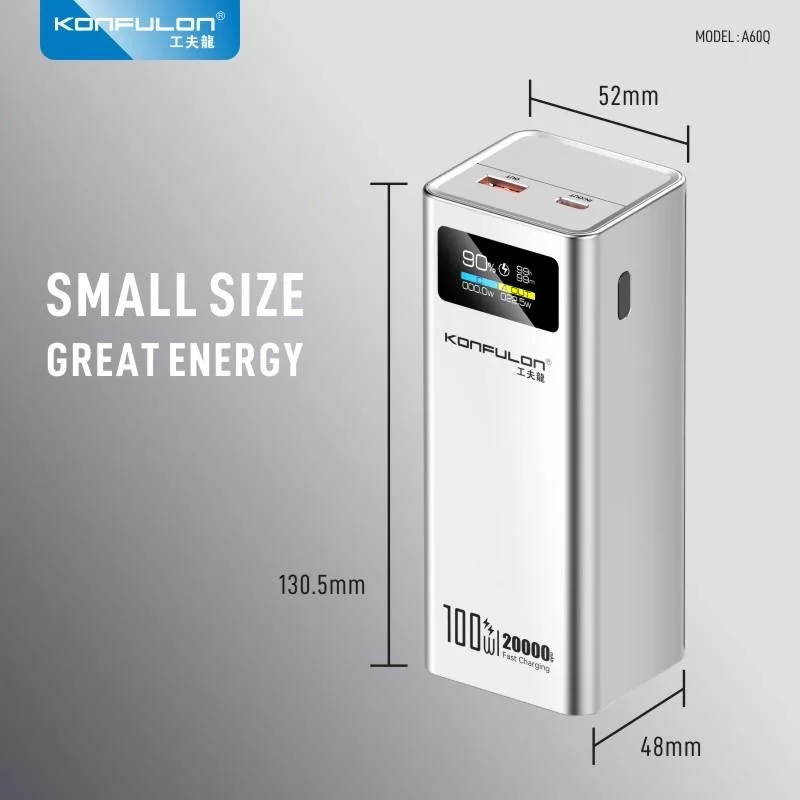 پاوربانک کانفلون A60Q با ظرفیت اسمی 20000 میلیآمپر ساعت و پشتیبانی از شارژ فوقسریع تا 100 وات، انتخابی ایدهآل برای کاربران حرفهای است که به دنبال شارژ سریع و قدرتمند برای لپتاپ، گوشی و سایر دستگاههای خود هستند.