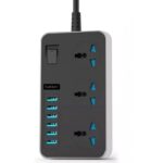 این چند راهی با داشتن انواع رابط و خروجی شارژ سریع امکان اتصال 9 دستگاه با توان خروجی 3000 وات را ممکن می سازد. مناسب برای تبلت، تلفن همراه، MP3 ،GPS و هر انواع لوازم برقی دارای کلید on/off جنس از پلاستیک مقاوم در برابر حرارت و ضربه ABS-PC دارای سه ورودی یونیورسال 6 ورودی یواس‌بی 5V/3.1A MAX 3000W/16 A 110-250 V