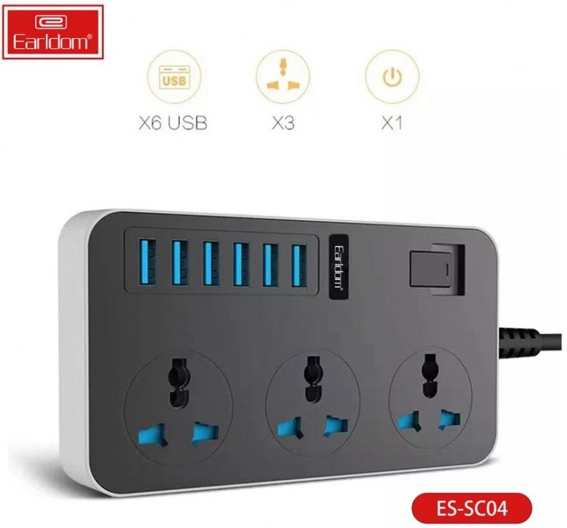 چندراهی هوشمند ارلدام مدل ES-SC04 با کابل ۲ متری و ۳ خروجی