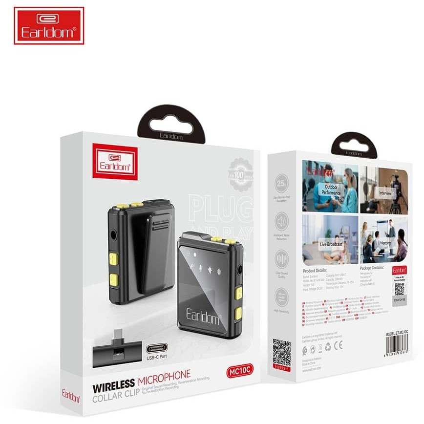 میکروفون یقه ای بی سیم ارلدام مدل ET-MC3C با درگاه Type-C